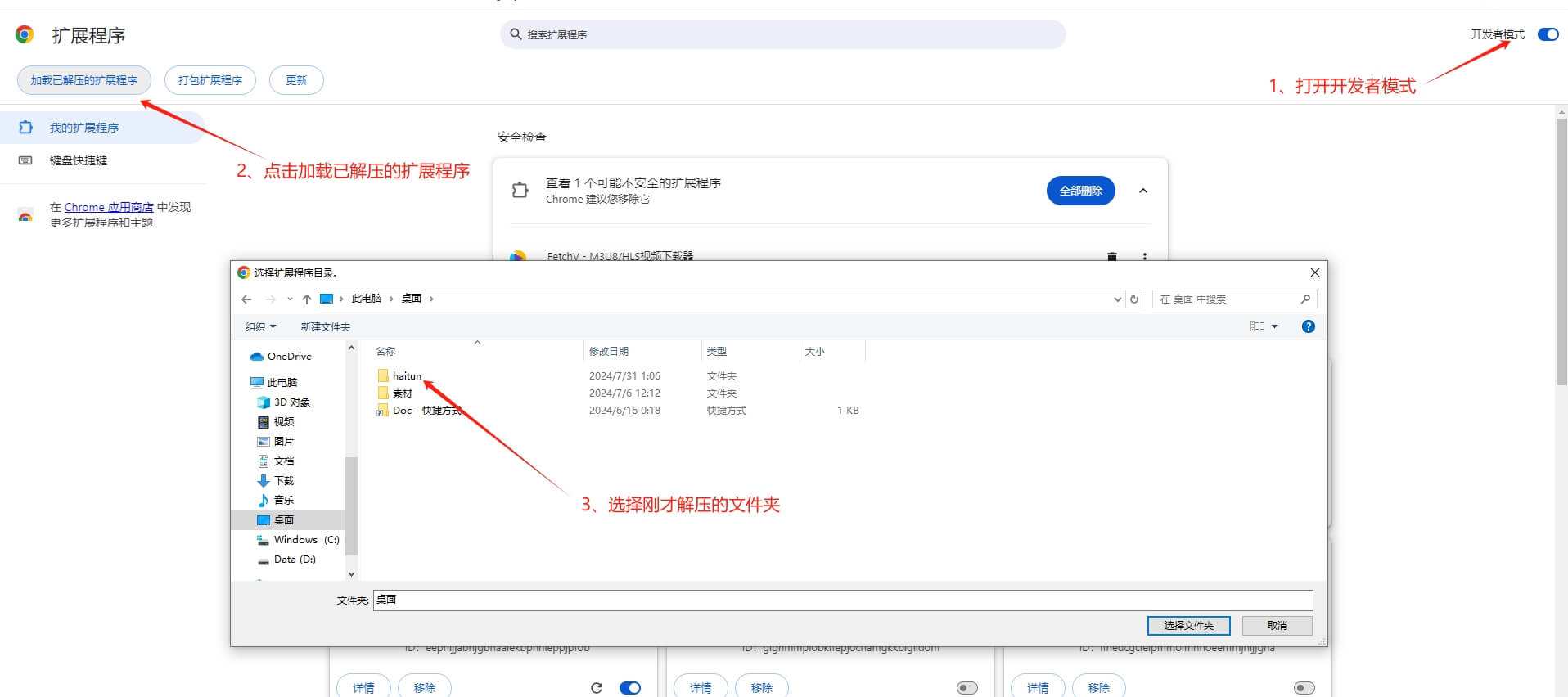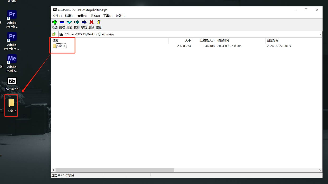 下载插件2️⃣ 把压缩包里的 haitun 文件夹解压出来即可,记住路径,等会安装插件要找到这个文件夹。